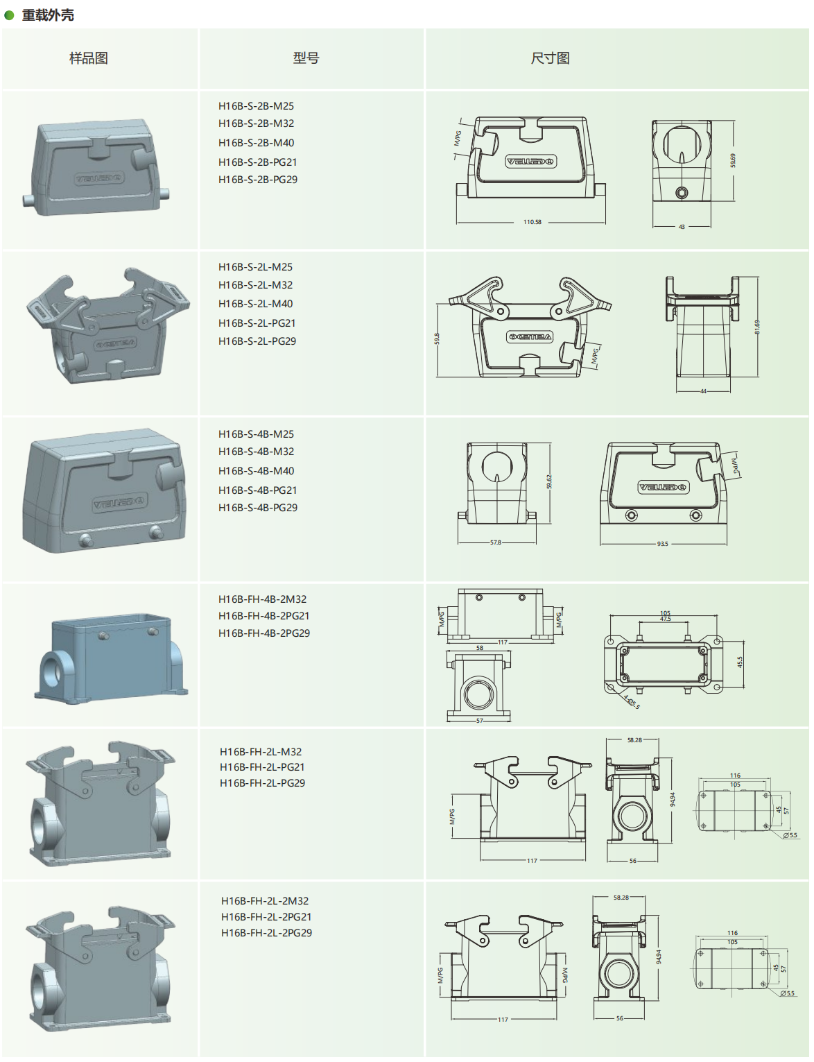 为乐电气VELLEDQ重载连接器外壳H16B-TSH-24B-M20532PG-K-F1L-CV