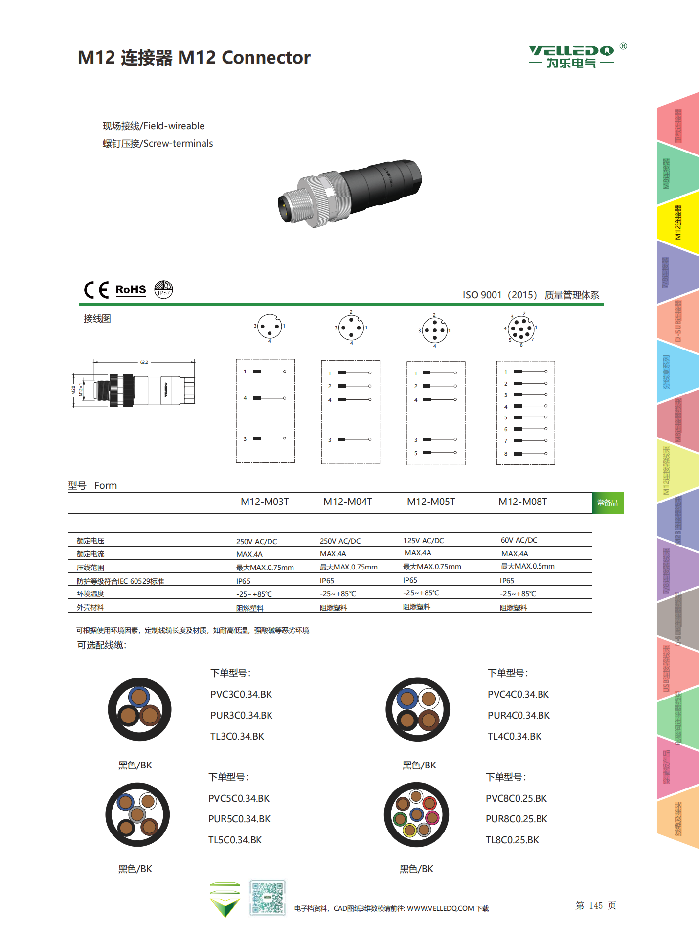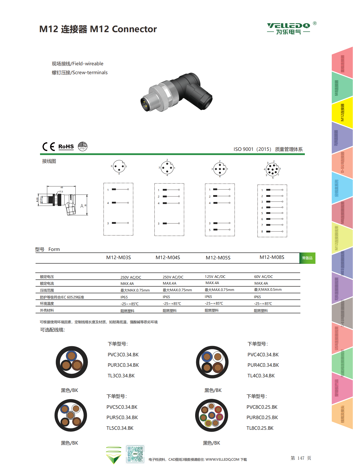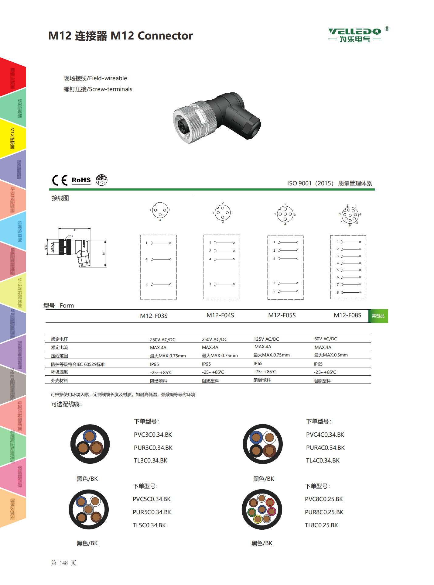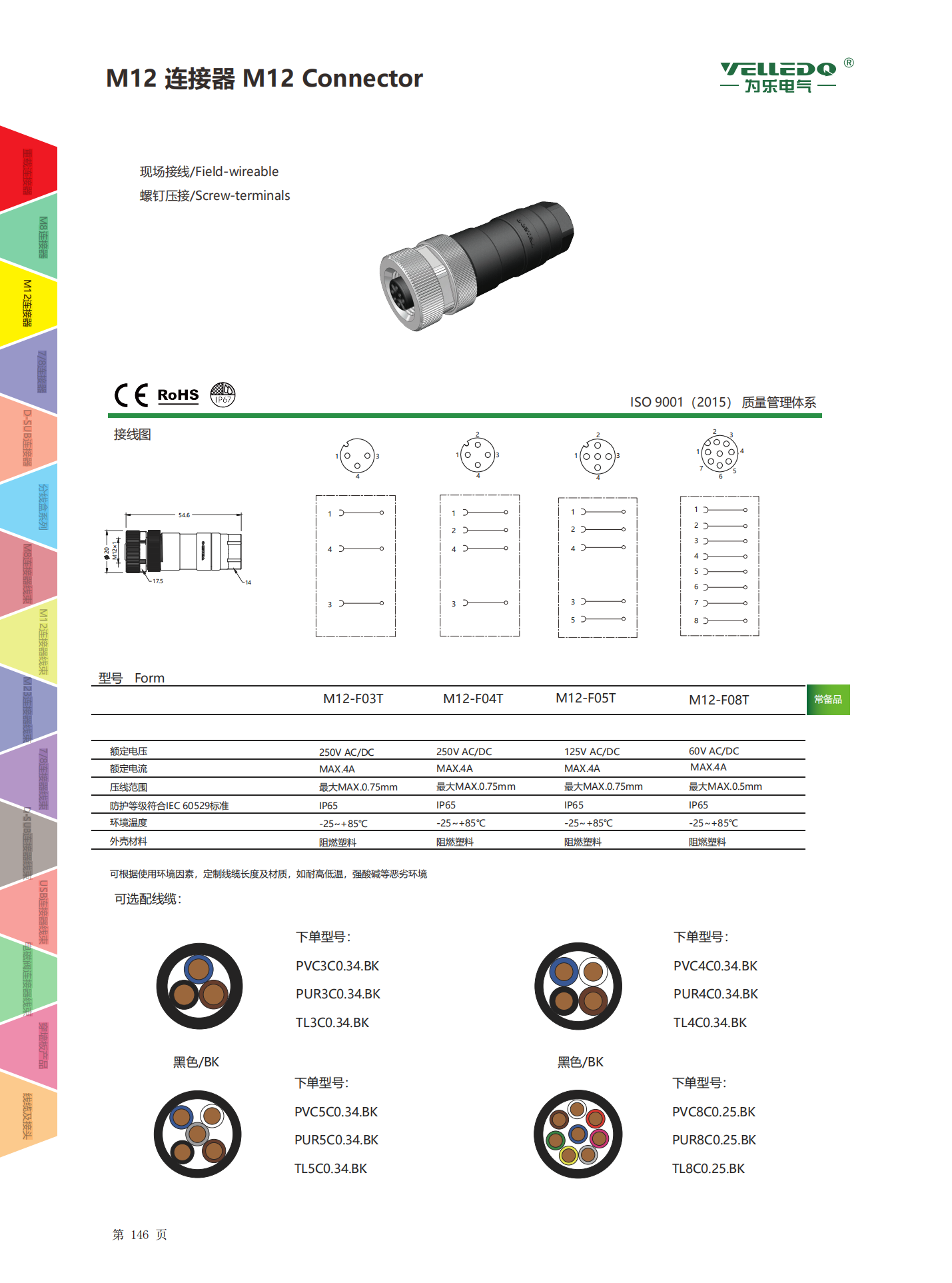 为乐电气VELLEDQ 现场安装连接器M12 3458芯