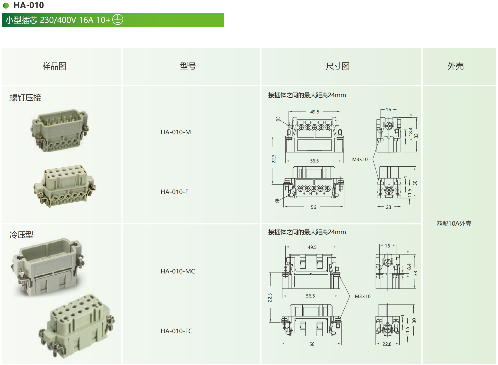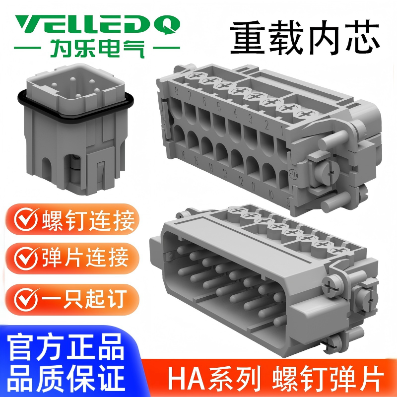 为乐VELLEDQ重载连接器公母插芯HA-061016243248-MFS螺钉弹片冷压