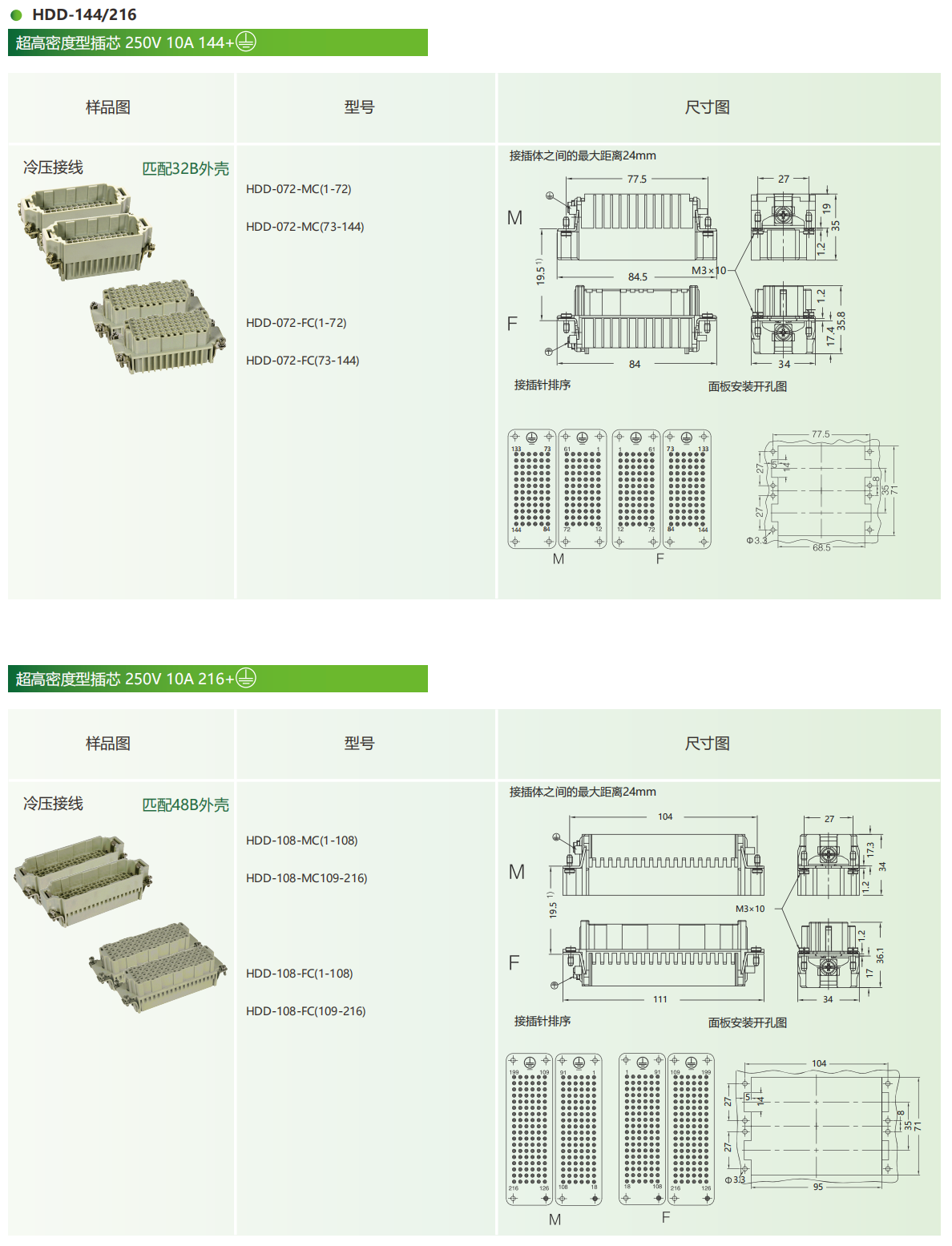 为乐VELLEDQ重载连接器公母插芯HDD-0244272108216MFC-MFS冷压针