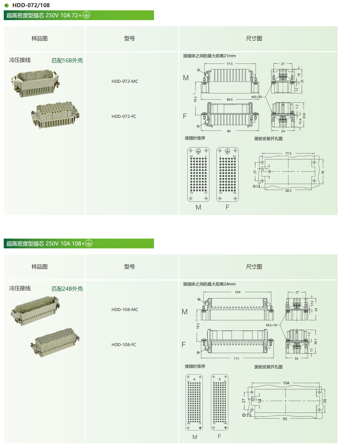 为乐VELLEDQ重载连接器公母插芯HDD-0244272108216MFC-MFS冷压针