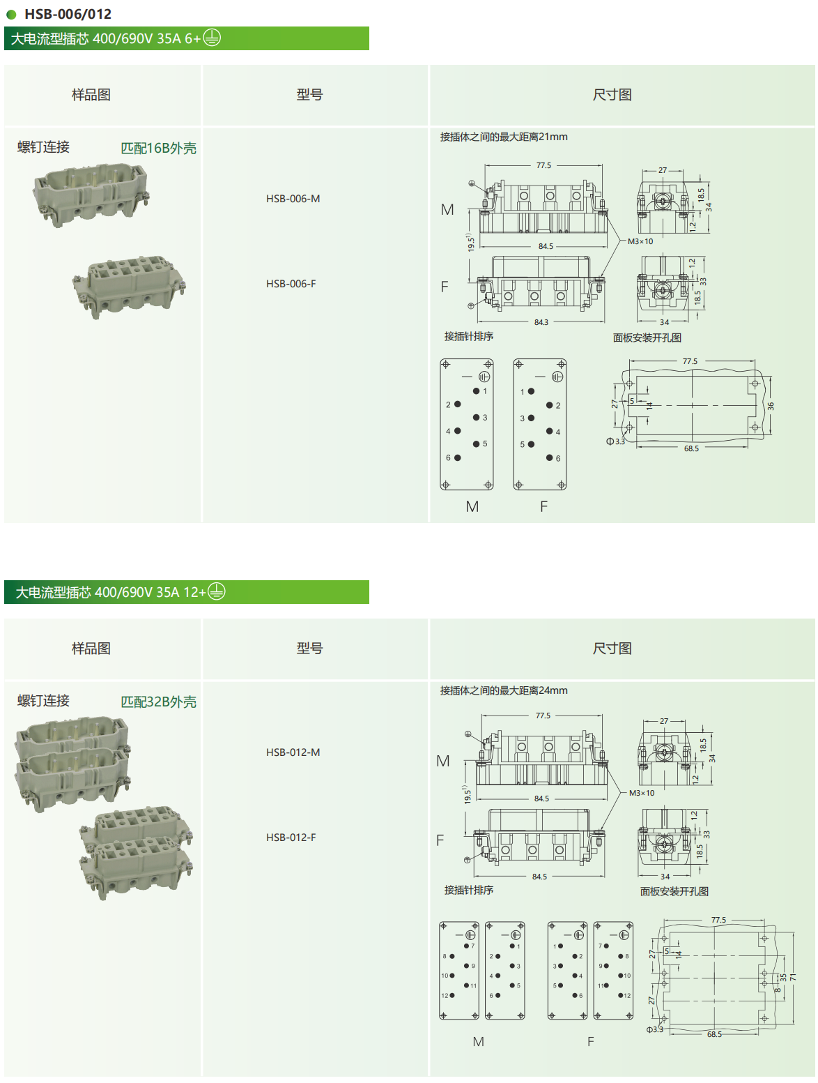 为乐VELLEDQ重载连接器公母HSB-006-MF大电流插612芯35A螺钉