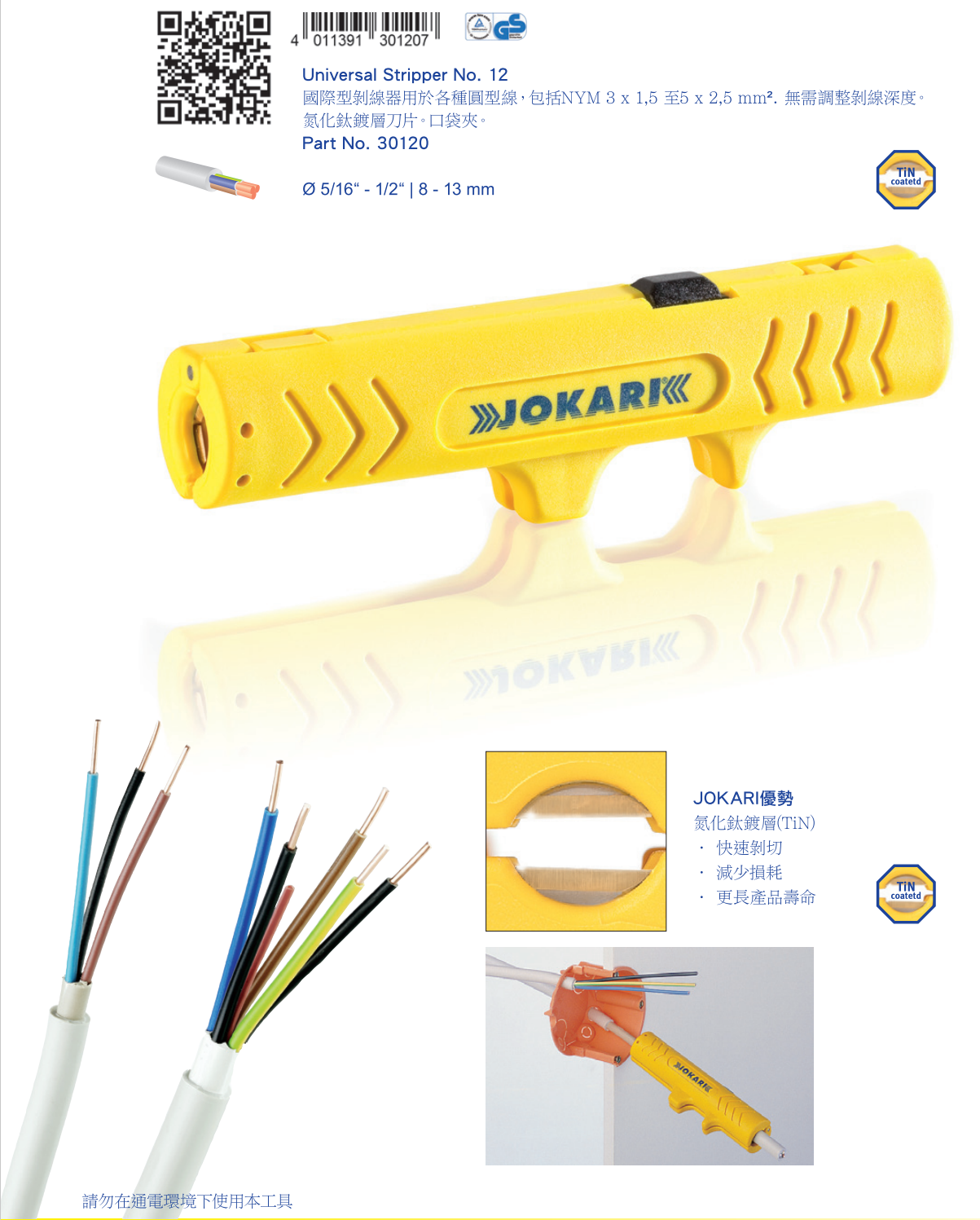 JOKARIKrampe GmbH是一家在剝除及拆解電纜手工具技術上領先的製造商·範圍包括廣泛應用領域的特殊工具,能快速、簡便並精確的剝除雷和雷線。我們大部份的工具都有TUV和 GS認証,因此我传承诺我们產品用戶的安全。作為一個超過40年開發經驗的知名專家,我們幾平在所以手動剁除電續電線的需求上都提供了創新的解決方案。