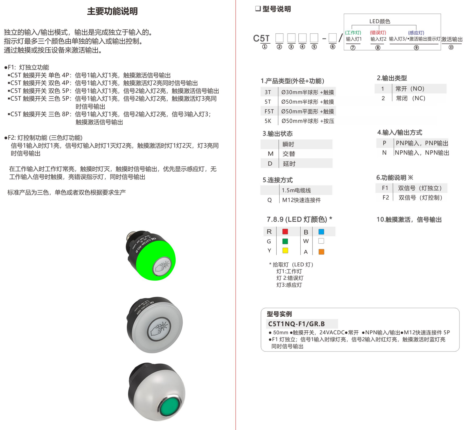 工图GK三色触摸半球带输出LED指示灯警示PNP工作智能物流C5T防水