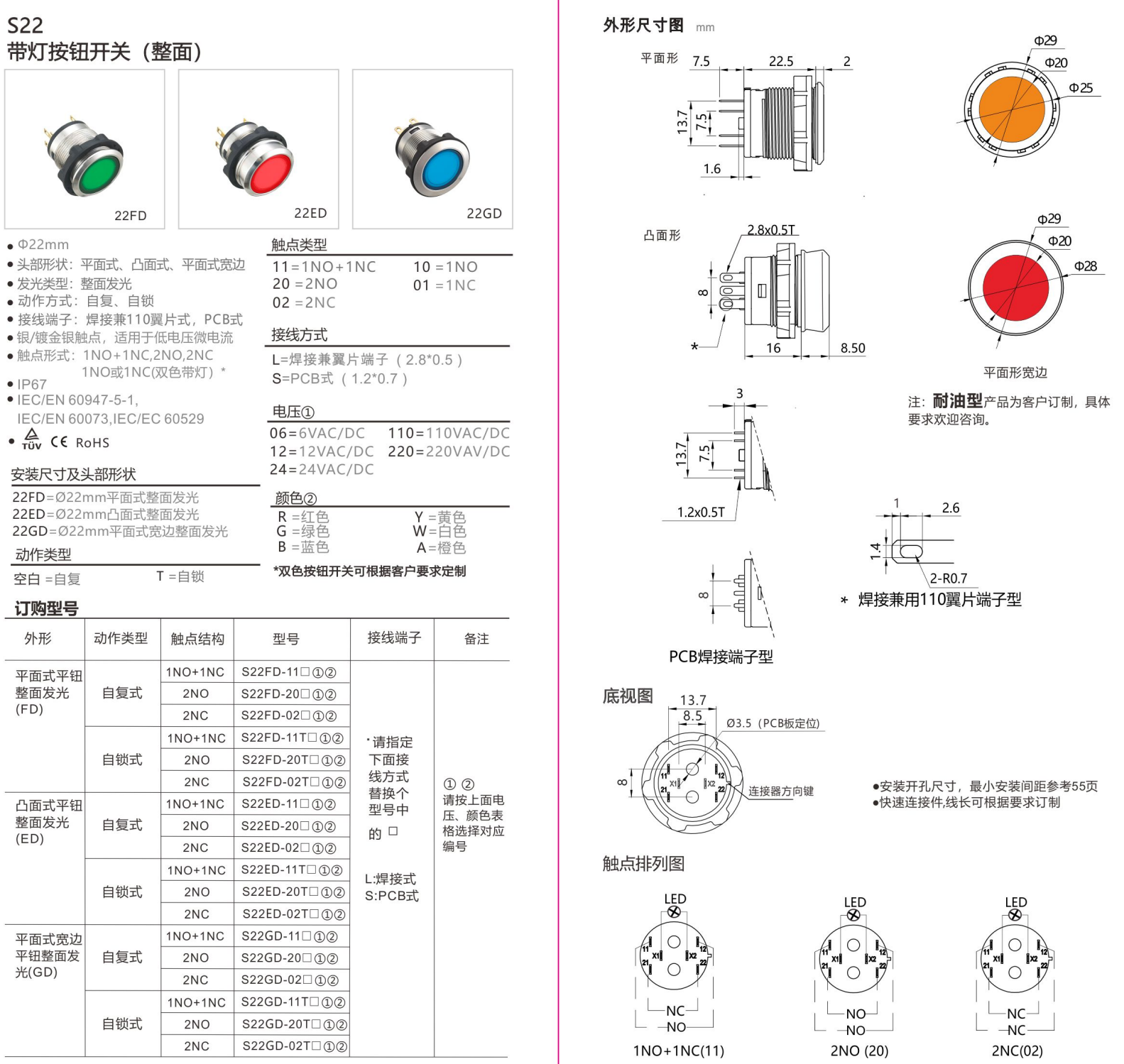 旋钮/钥匙钮:环形发光;紧急钮:圆点发光完整的产品线:按钮开关、选择开关、钥匙开关、紧急钮、指示灯蜂鸣器、USB插座、RJ45插座