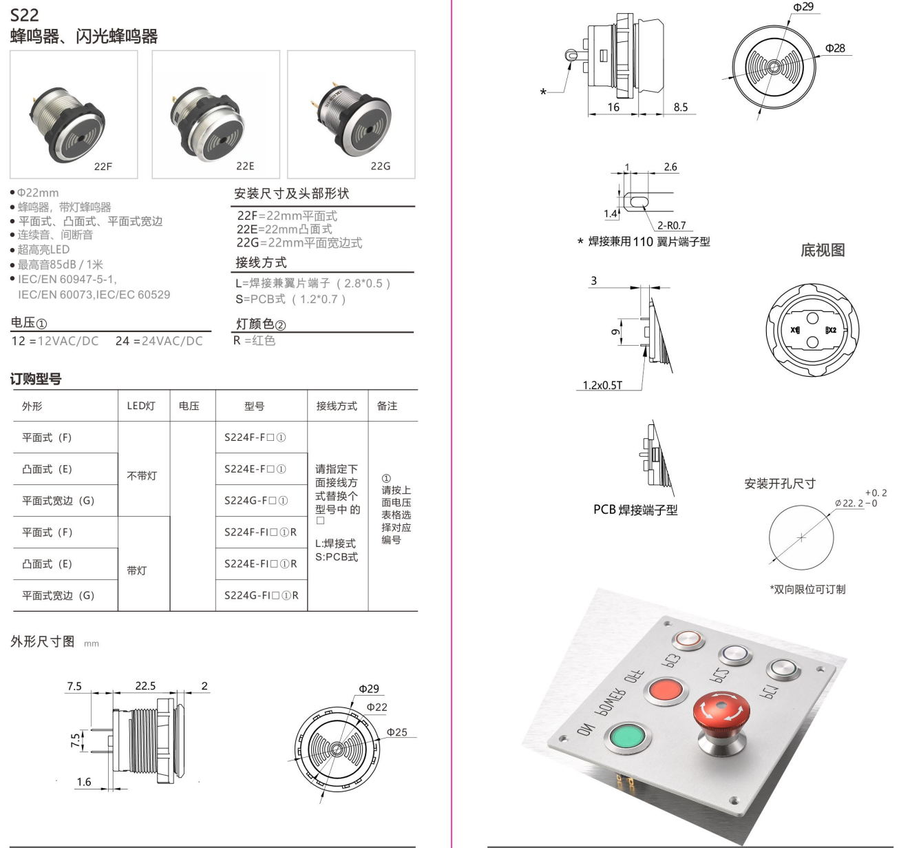 旋钮/钥匙钮:环形发光;紧急钮:圆点发光完整的产品线:按钮开关、选择开关、钥匙开关、紧急钮、指示灯蜂鸣器、USB插座、RJ45插座