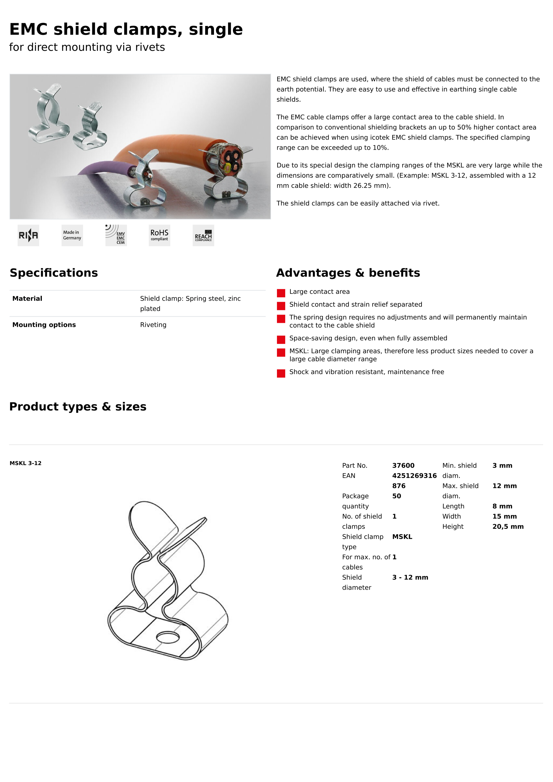 德国进口ICOTEK易科智联EMC电缆屏蔽夹MSKL1.5-3-6-8-11-17-22-30