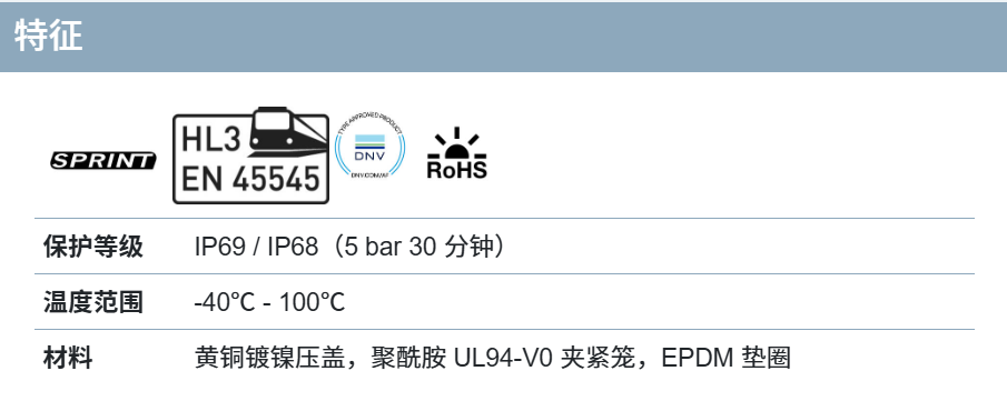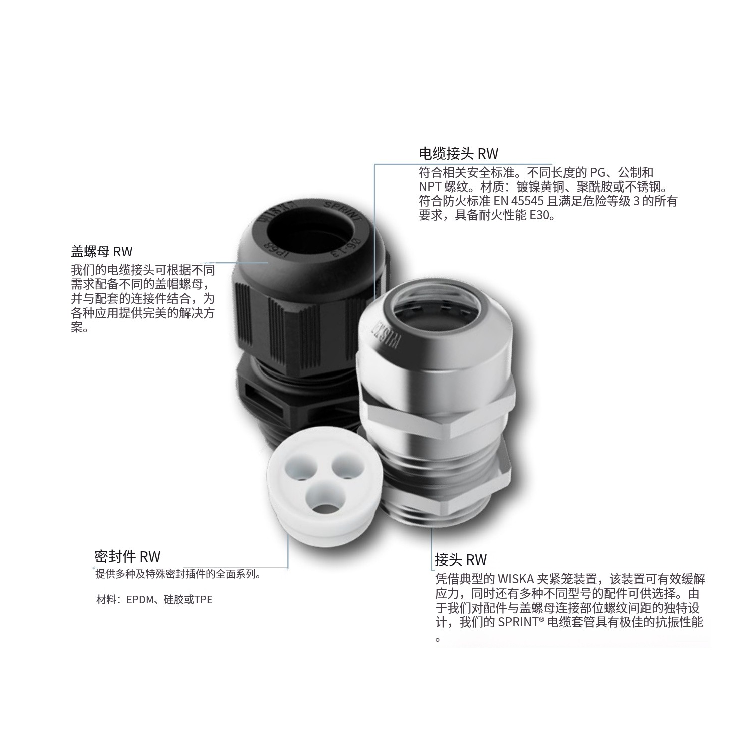 德国WISKA铁路符合EN45545认黄铜不锈钢尼龙电缆防水接头EMSKVRWL