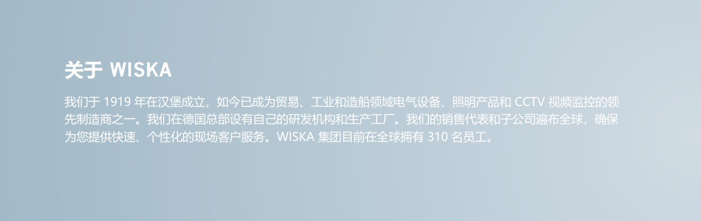 维斯卡公司于1919年在汉堡成立,致力于为全球客户研发和生产创新产品。公司在卡尔滕基兴设有两处办公地点,拥有超过240名员工,另有320名员工遍布全球各地。