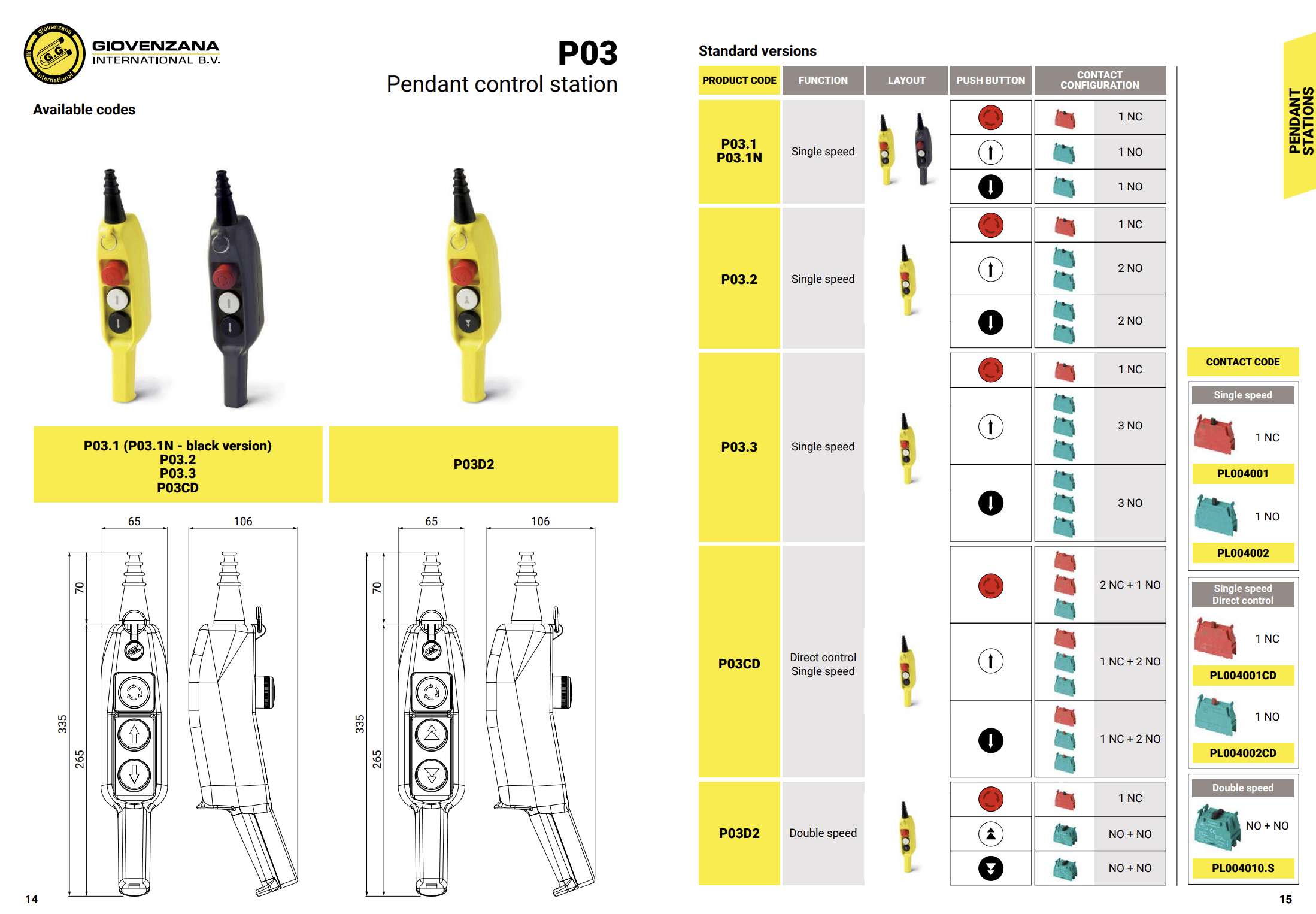 进口GGIOVENZANA防水起重机吊车装控制手柄停按钮盒P023.12DNRM