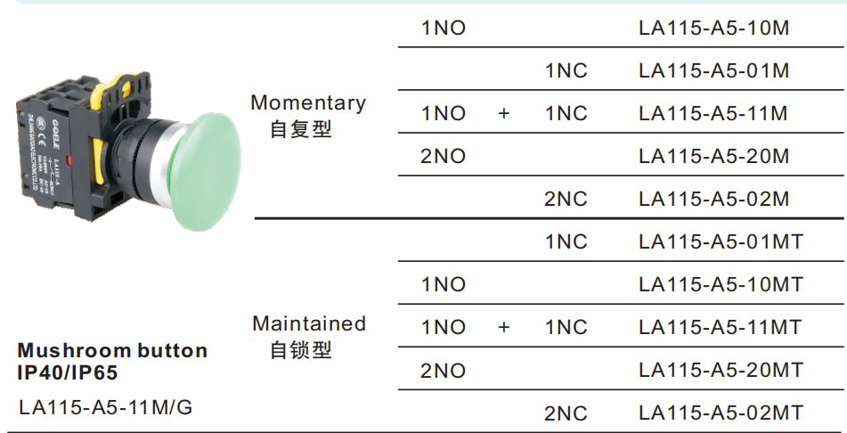 高桥GQELE/22mm防水自锁自复位蘑菇头按钮一常开闭AL115-A5-11M